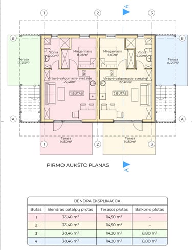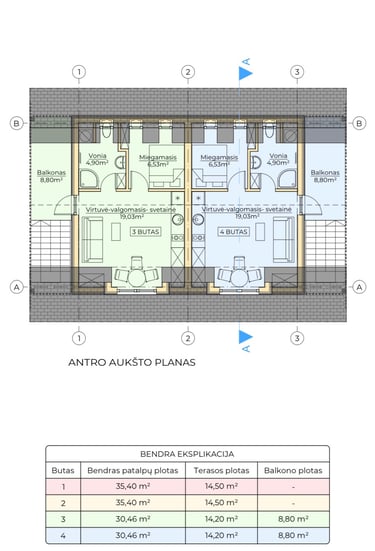 - Sienos: gyvenamieji kambariai - G/K sienos dažomos balta spalva;