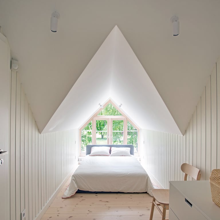 - Sienos: gyvenamieji kambariai + antresolė - G/K sienos dažomos balta spalva;